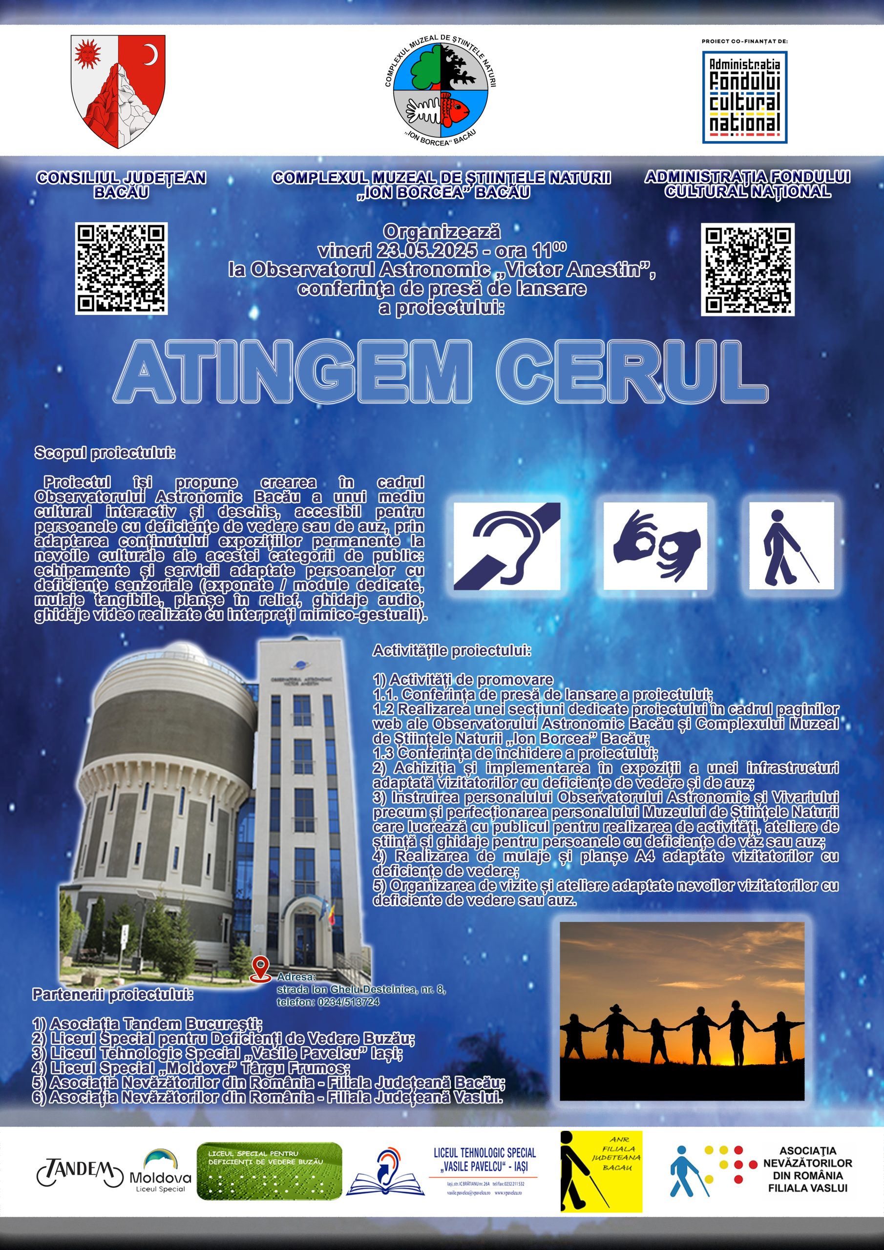 În data de 30.09.2014, Consiliul Judeţean Bacău a semnat cu Ministerul Dezvoltării Regionale şi Administraţiei Publice, prin Agenţia pentru Dezvoltare Regională Nord-Est, Contractul de finanţare nr. 4715 pentru implementarea Proiectului „Restaurarea şi Valorificarea Durabilă a Patrimoniului Cultural-Observatorul Astronomic „Victor Anestin” Bacău, cod SMIS 13163, din fonduri ale Programului Operaţional Regional 2007-2013, Axa prioritară 5, Domeniul major de intervenţie 5.1.