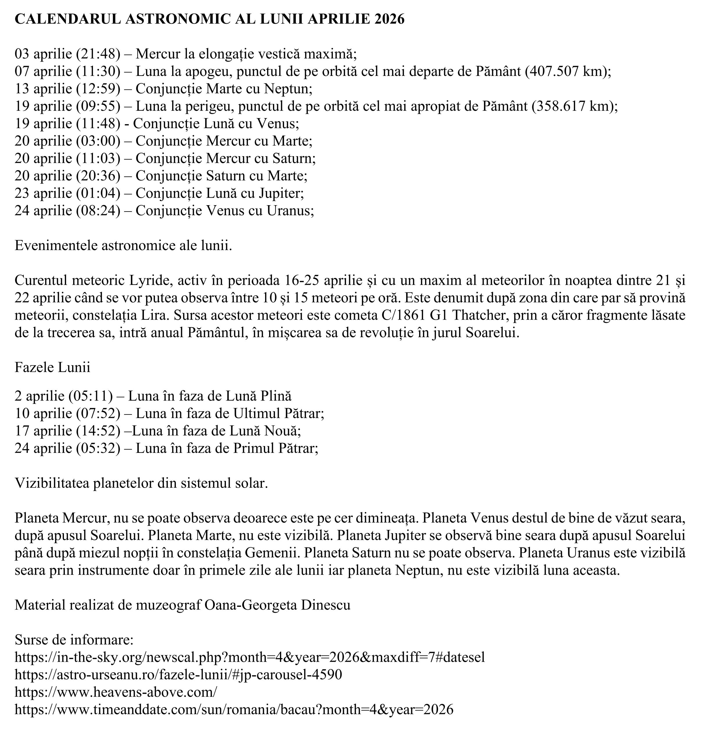 DESPRE OBSERVATORUL ASTRONOMIC VICTOR ANESTIN BACĂU